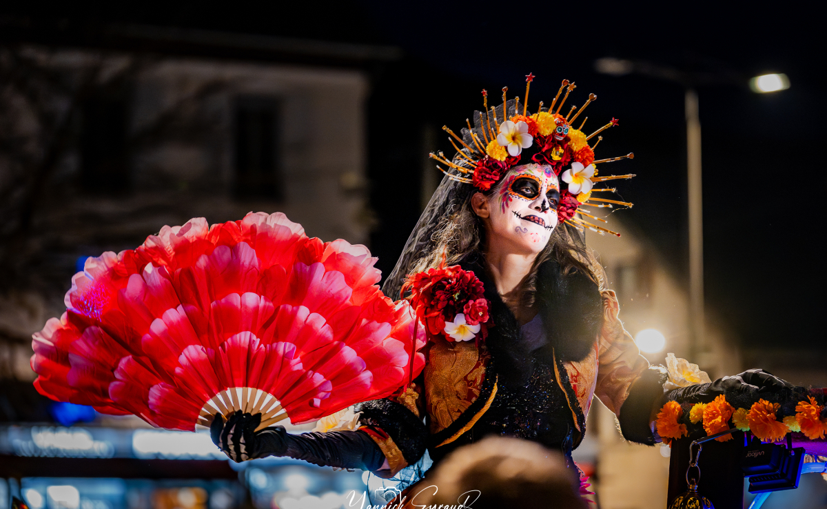 Inspirée des traditions mexicaines et des magnifiques maquillages de Santa Catrina : "Las Muertavillas" est un spectacle déambulatoire musical rythmé par un char funéraire sonorisé, mêlant arts du cirque, costumes flamboyants, gracieuse échassière et danseuses mortelles !