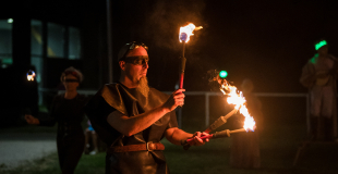 Ce spectacle est idéal à la tombée de la nuit car les costumes des comédiens s'allument et scintillent au fur et à mesure que la nuit les enveloppe. Une batucada peut accompagner les comédiens afin d'apporter un côté festif à la cérémonie et un final de feu peut également avoir lieu pour rendre le moment encore plus impressionnant. On attend plus que vous, la cérémonie millénale va bientôt commencer...
