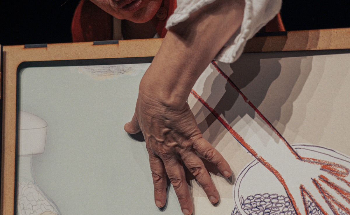 Narration kamisibaï théâtralisée. D'après l'album de Tom et Rico de Galou, autrice -illustratrice dans la collection" Contes pour penser à l'endroit" chez Pour Penser Editions