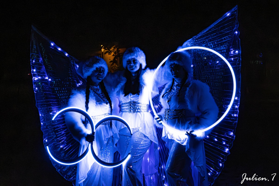 En déambulant, ces jongleurs fascinent les spectateurs, les transportant dans un univers où l’hiver et la lumière se rencontrent dans une harmonie parfaite, célébrant ainsi la beauté fragile et transitoire de la saison froide.
