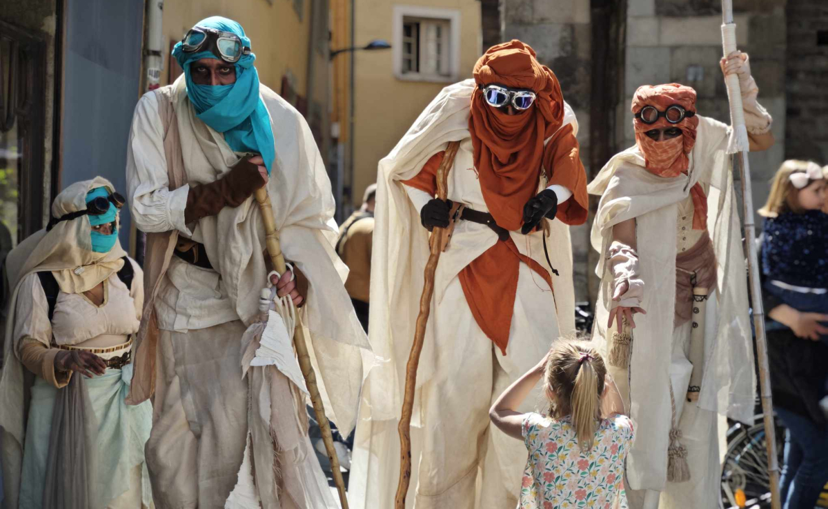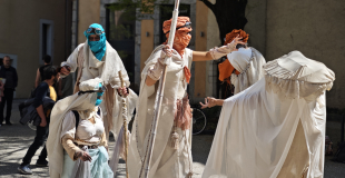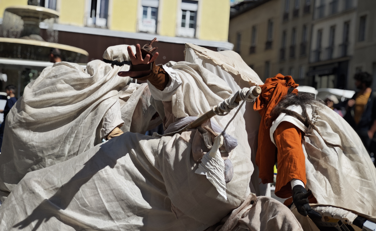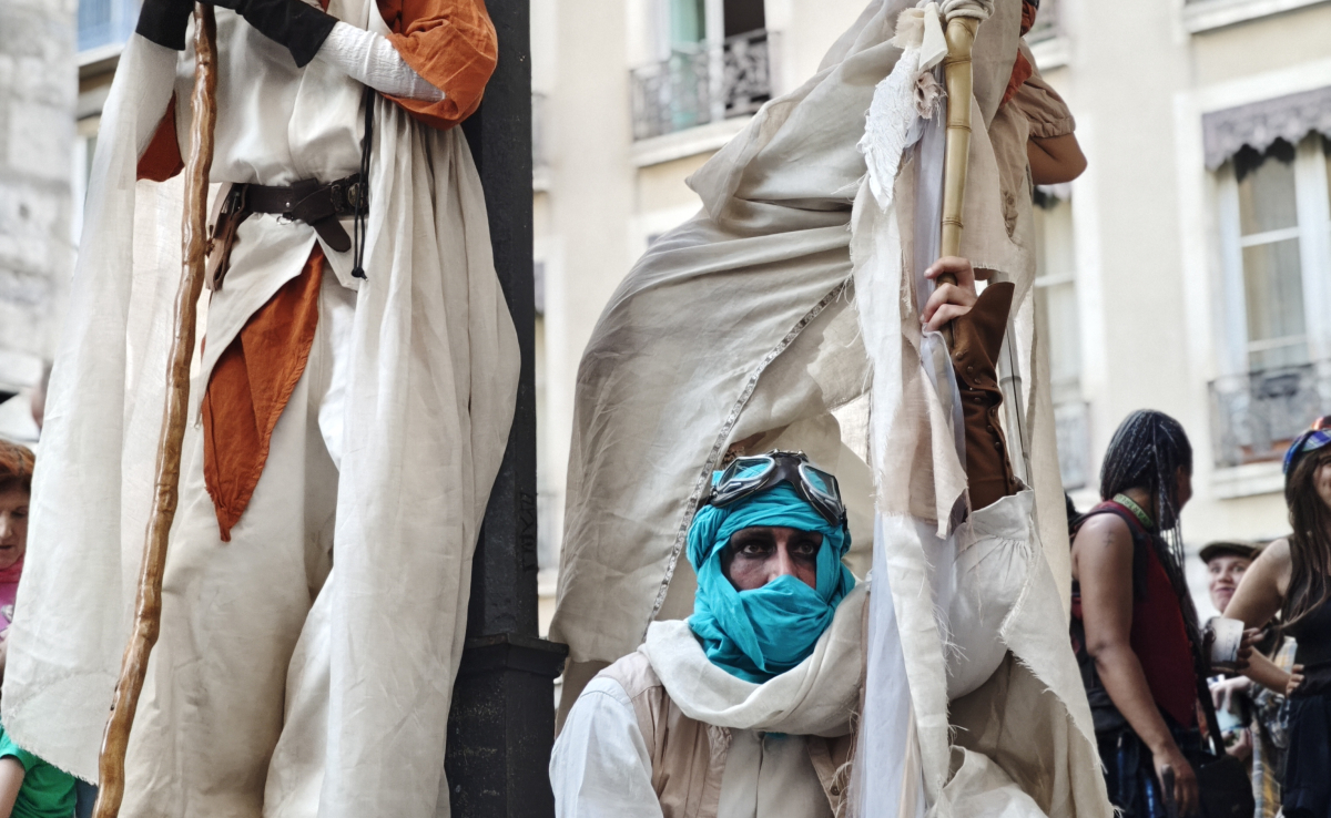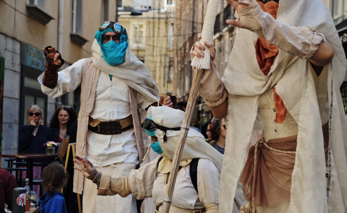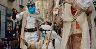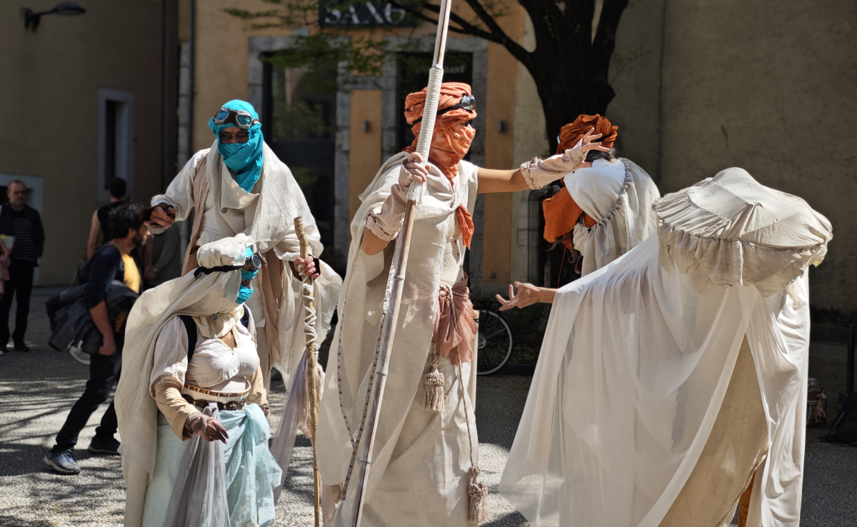 Déambulation tout public de 30 à 45min (répétable plusieurs fois), de 3 à 10 artistes.