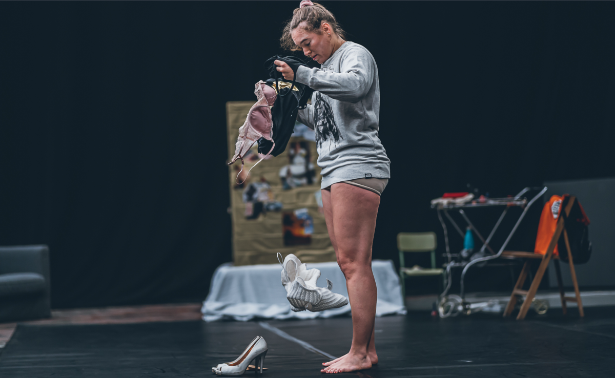 Sa bataille interne s’exprime à travers la danse, le twerk, le tissu aérien et le théâtre.