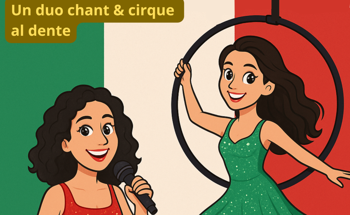Un duo 100% italien...et 100% glitter ! "Pasta & Paillettes", c’est une déclaration d’amour à l’Italie! Entre airs cultes, acrobaties aériennes, robes qui brillent et voix qui vibrent ! Une chanteuse. Une circassienne. Deux cœurs, une scène, et beaucoup de parmesan dans les étoiles. Une recette festive mêlant airs italiens (revisités ou traditionnels), numéros de cerceau aérien, touches d’humour et énergie contagieuse. Format adaptable : animation de rue, cabaret, évènement privé ou scène.