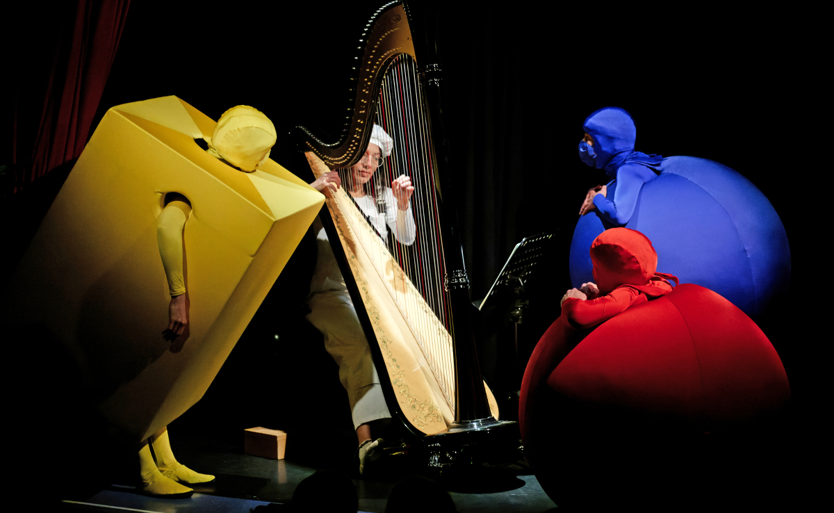Sans paroles, à travers les gestes, les rythmes et une musique jouée en direct à la harpe, le spectacle fait surgir des émotions simples et fortes : la joie, la peur, la surprise, la solitude, la rencontre. C’est un voyage sensoriel et poétique, où les formes deviennent personnages, et les couleurs, langage.