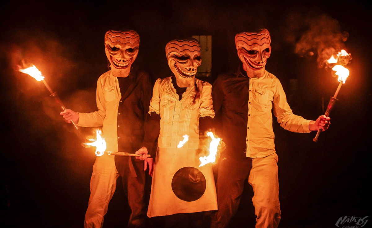Nous sommes les êtres de la nuit et nous vous donnons rendez-vous pour un bal de flammes, masqués, grimées ; c'est la nuit et le jour, le noir et le blanc qui se rencontrent et dansent en poésie