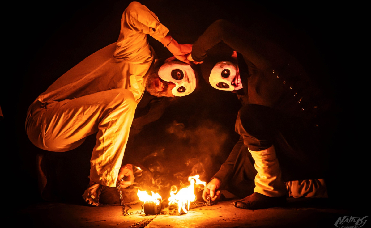 La peur est balayée par le rire, car nous eenouons avec le bouffon, et tentons d'interroger le vivant en nous, ainsi que le merveilleux qui naît de l'étrange, en utilisant le clown et le masque, vecteurs d'universalité, traversant les siècles et les cultures.