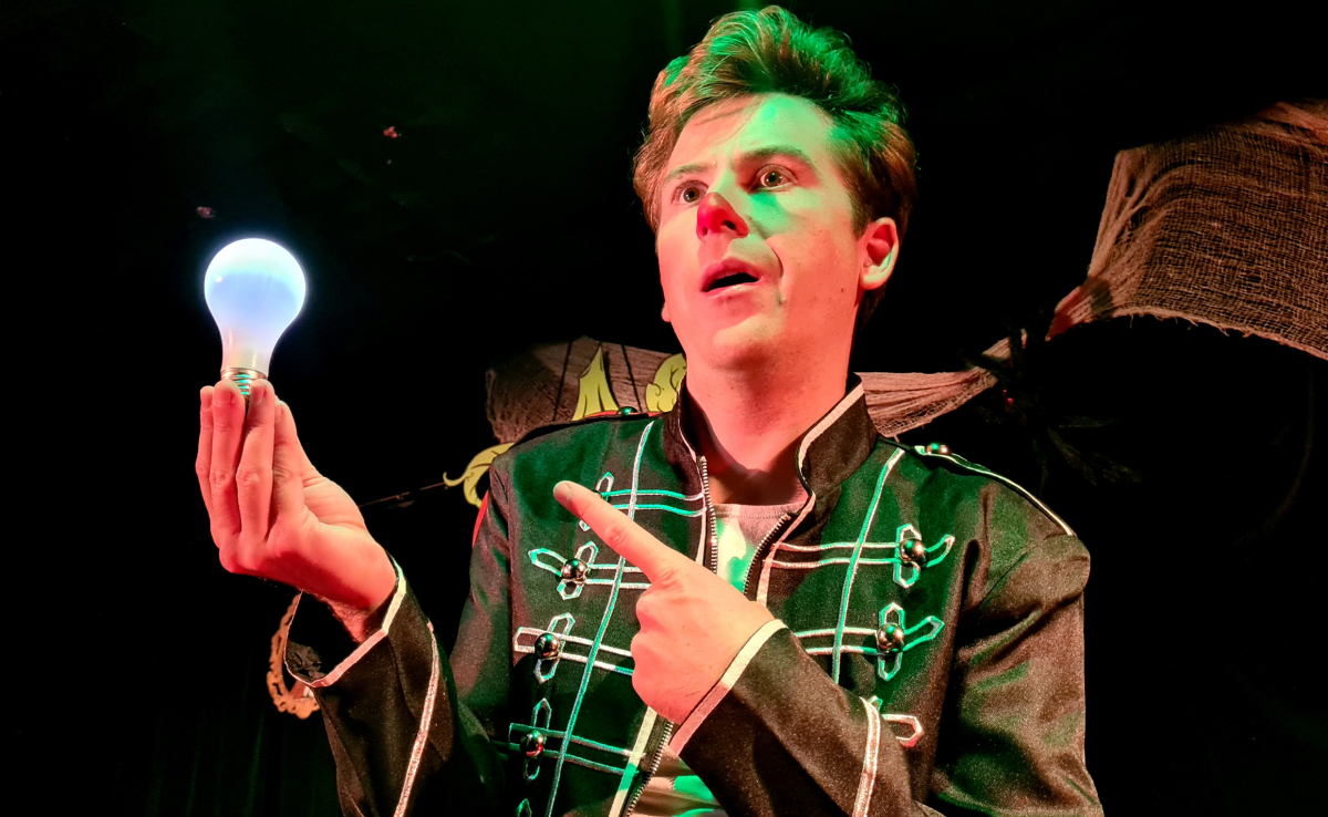 Dans ce spectacle de clown et de cirque familial, Erwan rêve de devenir un grand sorcier.
