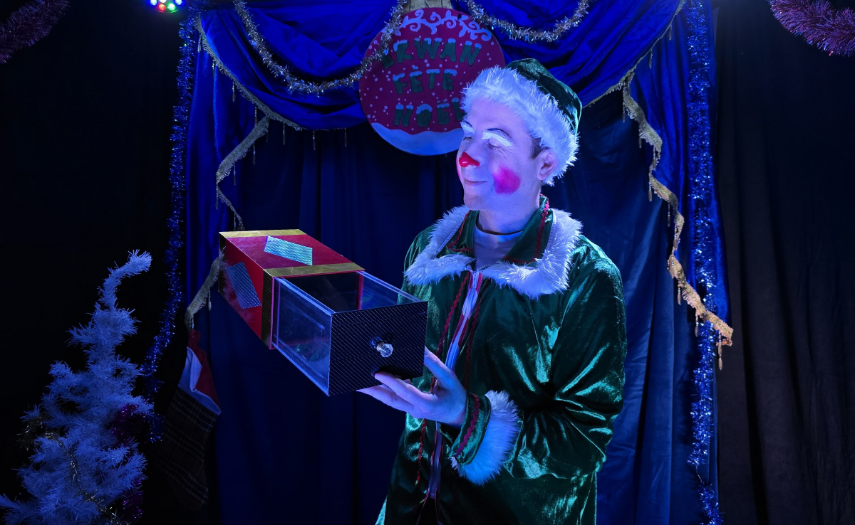 Dans ce spectacle féerique mêlant cirque, humour et poésie, Erwan le Clown rêve de devenir un lutin du Père Noël. Pour y parvenir, il devra prouver ses talents face à un lutin en image de synthèse… et à un public complice !