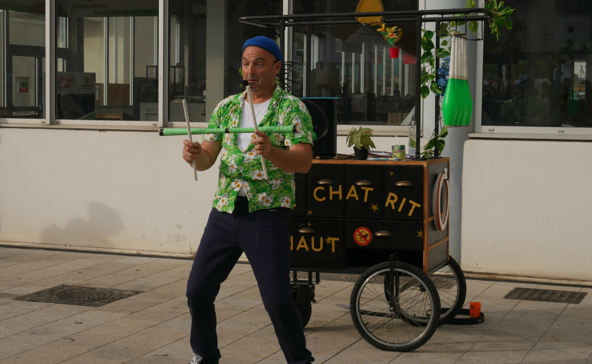 Les enfants pourront donner leur avis, participeront à l’amélioration du spectacle et surtout devront m’encourager afin que je sois fin prêt. À chaque tiroir un nouveau numéro ainsi tantôt de la jonglerie, tantôt de la magie, tantôt un numéro d’équilibre ! Et pour le numéro d’anges heureux, tous aux abris !