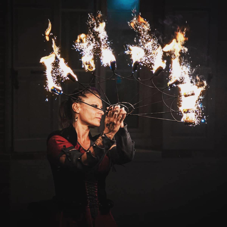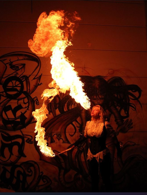 Cracheuse de feu et pratiquante du fire-eating, Vicky transforme chaque apparition en un moment spectaculaire et mémorable.