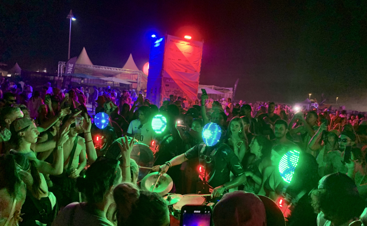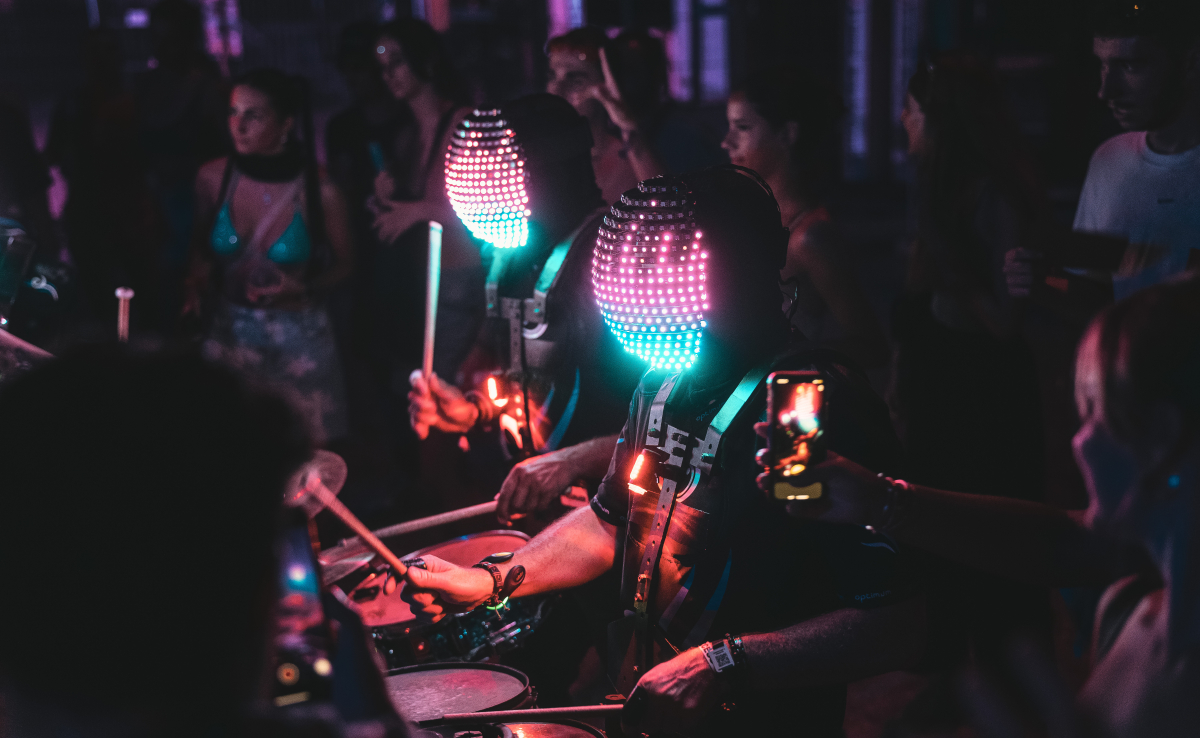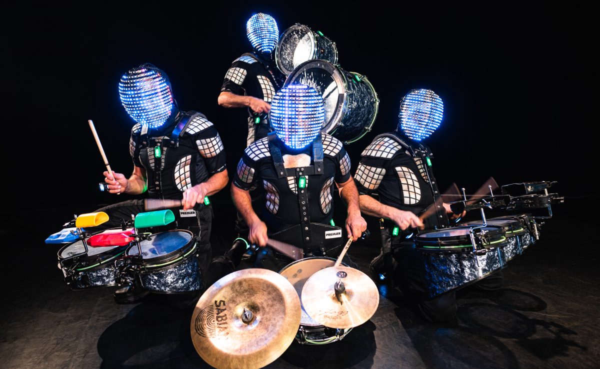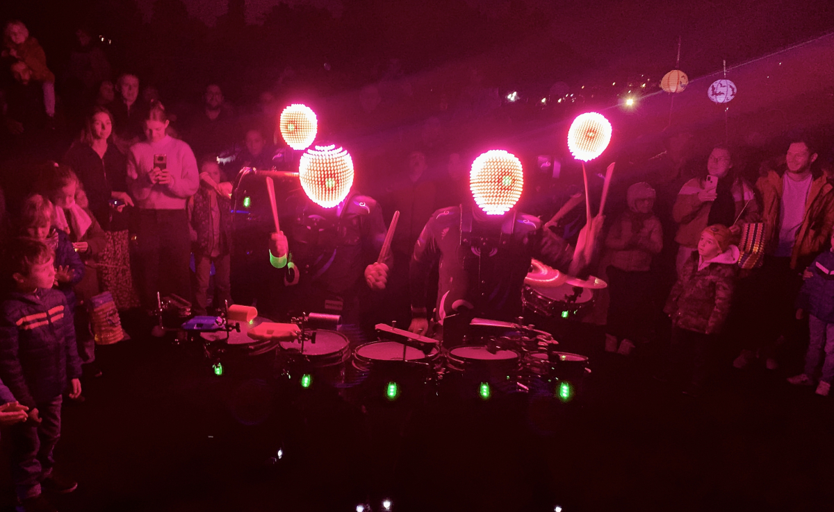 Complètement allumés, un mix de percussions spatiales, sidérant, sidéral ! Spectacle mobile de percussions rétro-futuriste avec des masques lumineux dont les effets illustrent la musique.