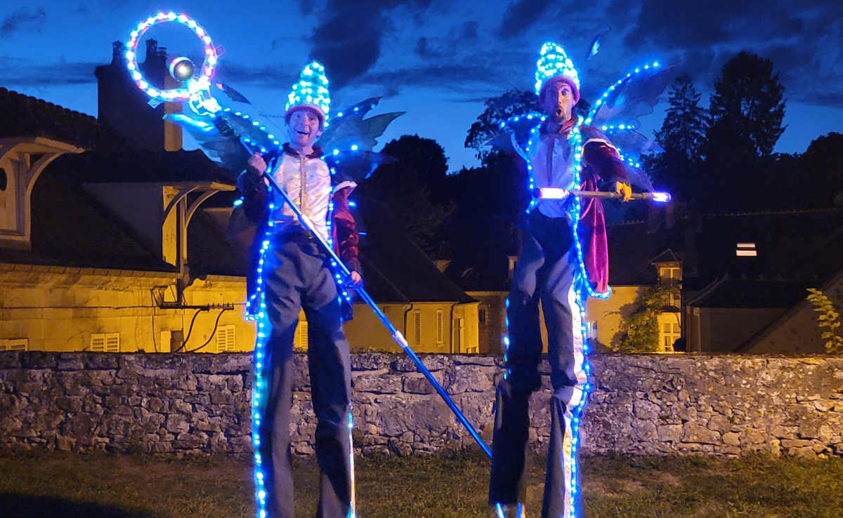 Mes Féériques Les Féériques, échassiers blancs lumineux, apportent à noël et pour les mariages, les inaugurations et autres événements élégants, une apparition merveilleuse. Ils et elles sont ... Par Compagnie Les Echalas