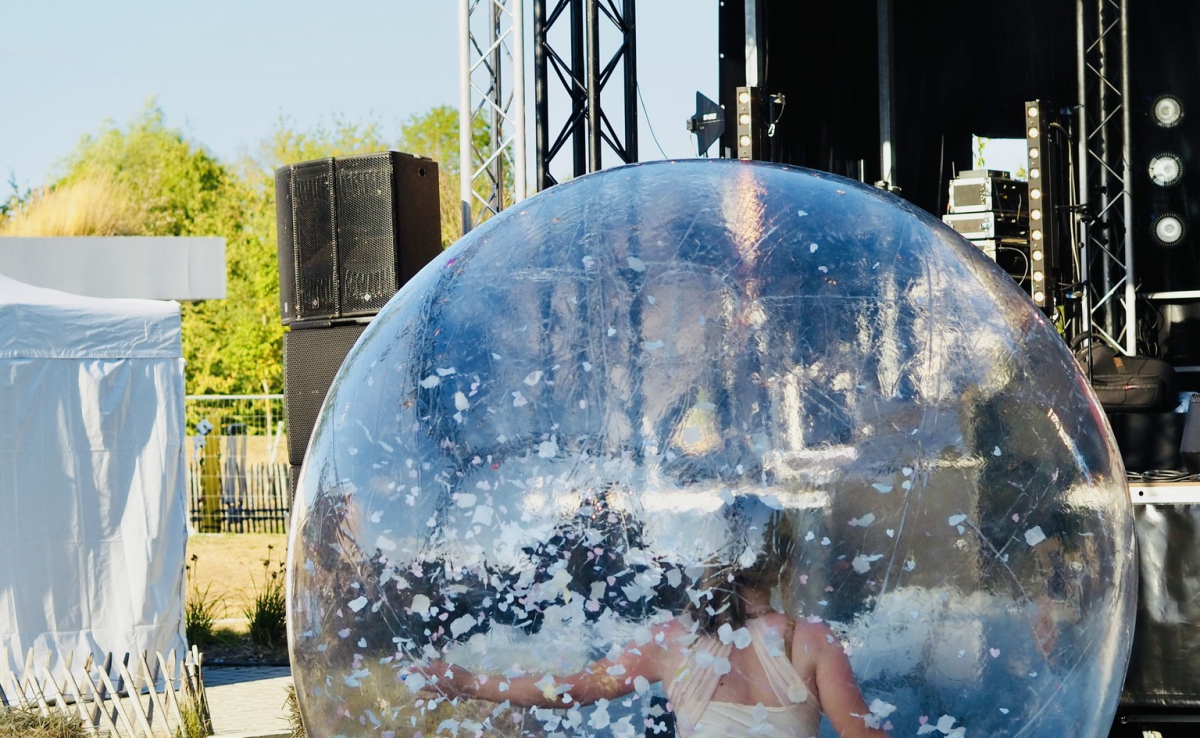 Mélange de grâce, de légèreté et de fantaisie, admirez une danseuse évoluer à l'intérieur d'une bulle transparente géante de 2m de diamètre transformant l'espace en écrin vivant !