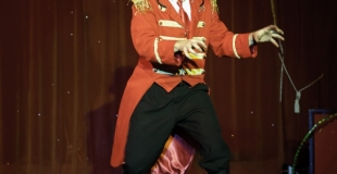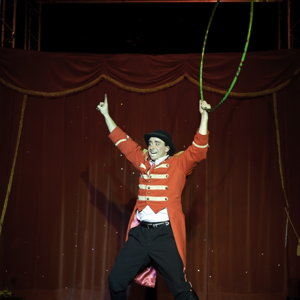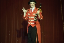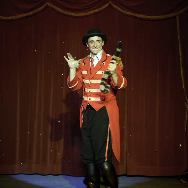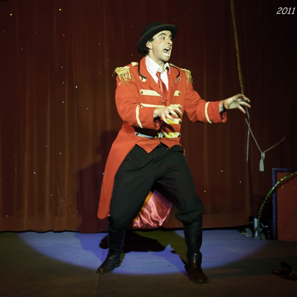 Je suis habillé en dompteur et mon tigre n'est autre qu'un spectateur que je déguise sur scène et à qui je demande de passer dans un cerceau.