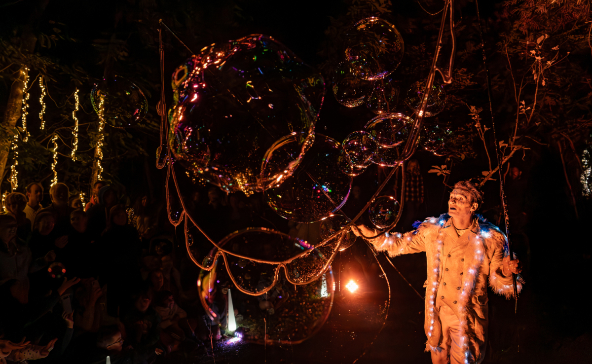 L'artiste portant un costume lumineux et poétique apportera une touche de magie avec ses bulles de savon spectaculaires et interactives.
