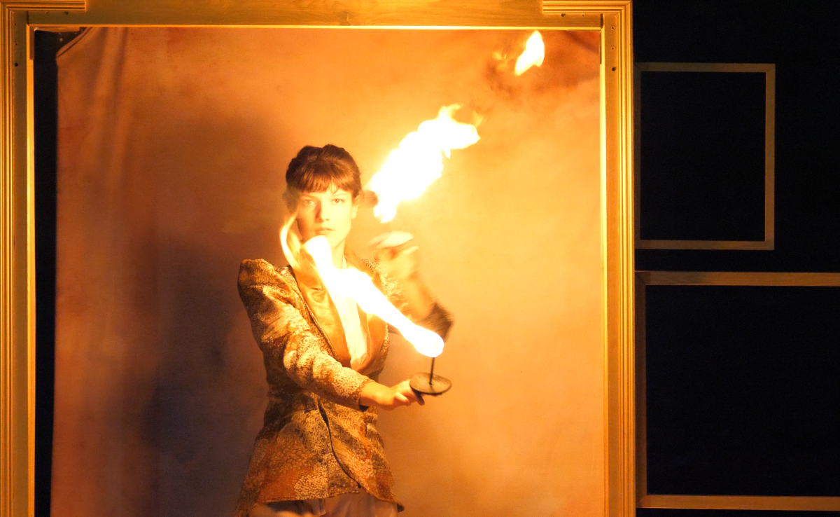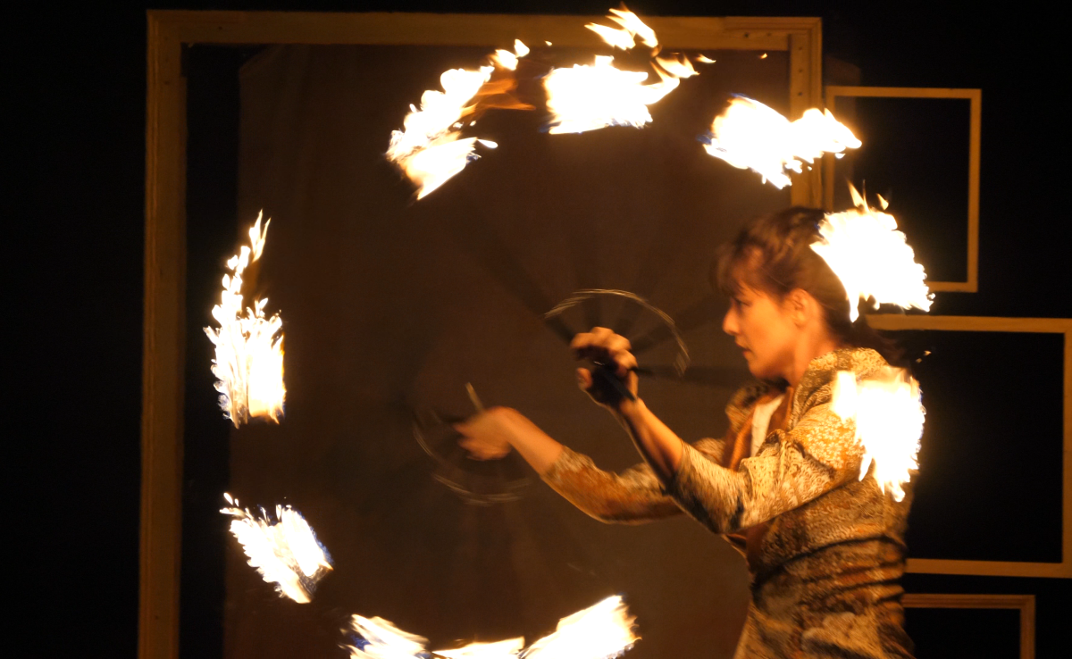 Mona est une performance chorégraphique et visuelle d’environ 20 minutes (adaptable en fonction de vos besoins) qui mêle danse et manipulation d’objets enflammés. Pensée comme un tableau vivant aux accents de rituel lumineux, elle plonge le spectateur dans une expérience à la fois élégante, envoûtante et spectaculaire.