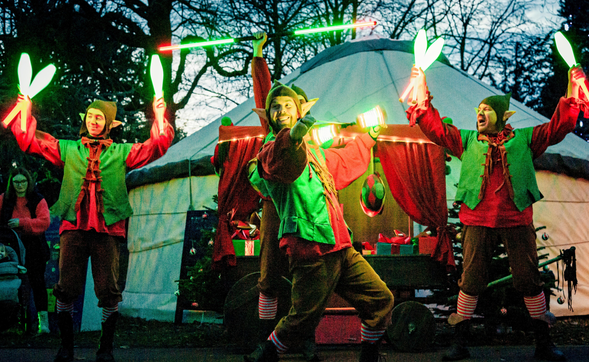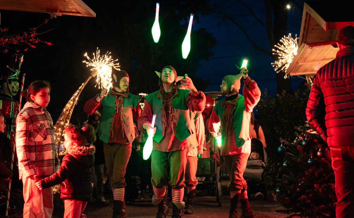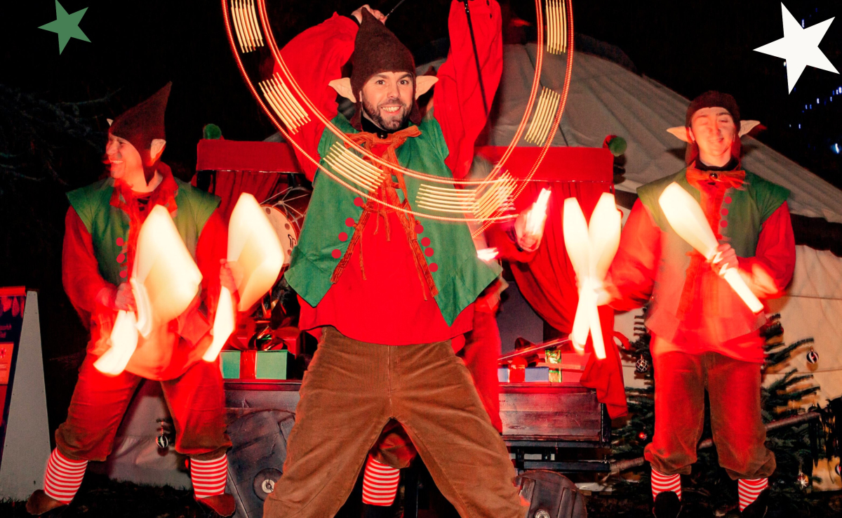 Quatre lutins déjantés et pleins d’énergie envahissent les allées des marchés de Noël et les rues des villages pour répandre la magie des fêtes !