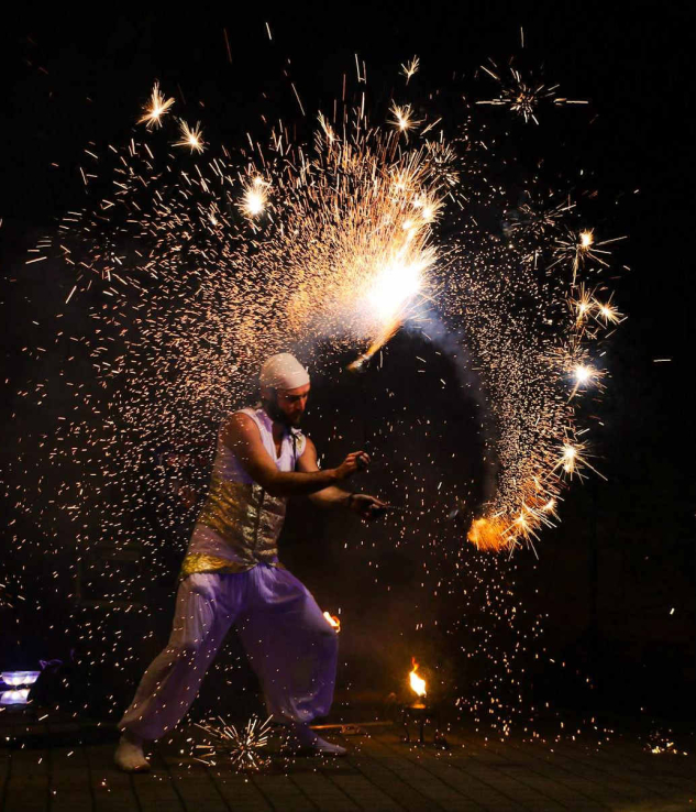 Izuran - Spectacle de feu narratif, mystique et émotionnel, inspiré des légendes d’Al-Andalus Portée par les vents mystiques d’Al-Andalus, l’héritière d’un peuple aux racines profondes : «Izuran », part en quête des Gardiennes Ancestrales, à la recherche de sa propre vérité.... Par Cie Labora Ognya