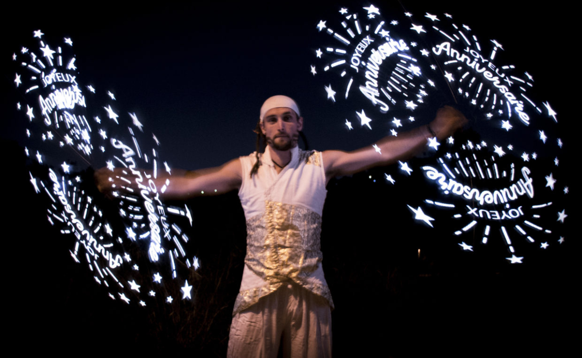 Kum-Kum propose une performance musicale où s’enchaînent avec énergie jonglage lumineux, effets de feu et touches d’artifice. Ce spectacle visuel mêle technique, rythme et poésie, pour un rendu à la fois moderne et spectaculaire.