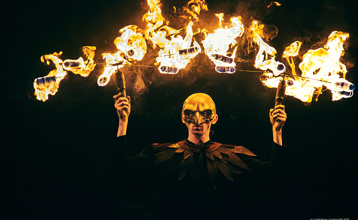 Plongez au cœur d’un rituel flamboyant où la lumière, la flamme et la musique ne font plus qu’un.