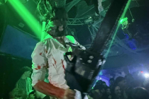 Vous êtes ici : Guide des spectacles évènementiels > Spectacles de Rue > Echassiers > Échassier halloween, l'homme à la tronçonneuse
