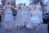 Mes Féériques Les Féériques, échassiers blancs lumineux, apportent à noël et pour les mariages, les inaugurations et autres événements élégants, une apparition merveilleuse. Ils et elles sont ... Par Compagnie Les Echalas