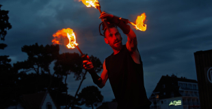 Spectacle de feu À la nuit tombée, venez découvrir notre spectacle de feu !Nous manipulons de nombreux agrès enflammés : mains de feu, bolas, bâtons, cerceau, éventails, ombrelle, ... Divers tableaux se... Par Alchimera