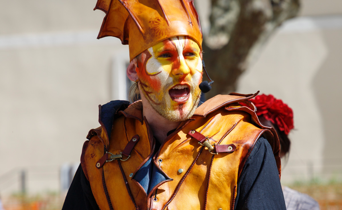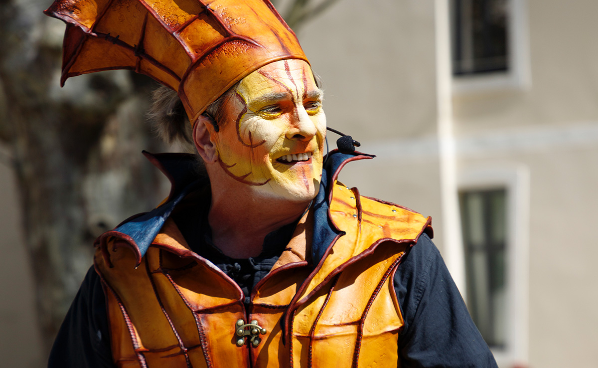 L'Orc de Barbarie Déambulation musicale médiéval fantastique.Roc est un "barde demi-orc". une créature de fantasy qui déambule dans votre ville en poussant sa grosse charrette sur laquelle se trouve un instrument... Par Cie du Zèbre à bretelles