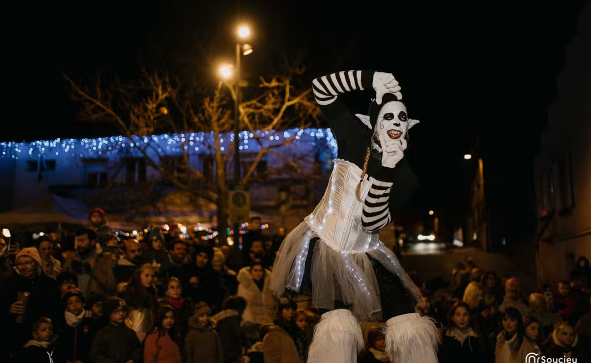 Les artistes tracent des silhouettes de lumière en mouvement, enchaînent figures et impacts lumineux, tandis que la musique électro jouée en direct propulse la parade et entraîne le public dans une dynamique collective et festive.