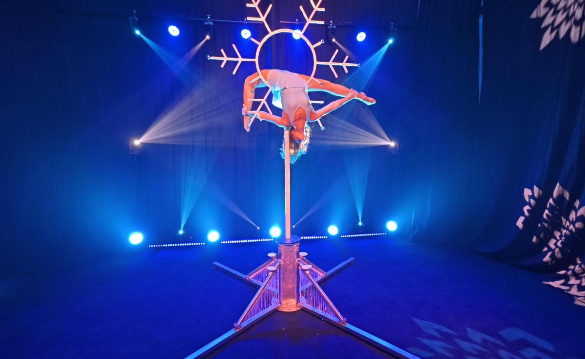 Performances acrobatiques, visuels led dernière technologie et machine à neige transportent le spectateur dans un univers magique.