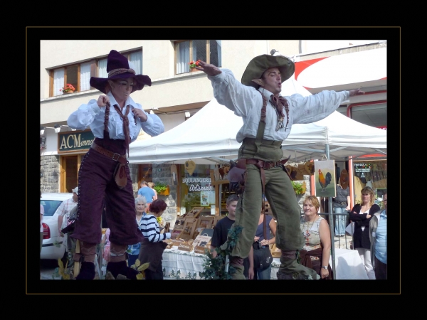 Le rythme de cette intervention est ponctué de musiques, beuglantes et autres litanies amenant, le public à se laisser tenter par de drôles de gigues, rires et fous rires.