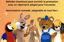 Pour enrichir encore davantage l’expérience, notre équipe s’accompagne désormais d’une chanteuse professionnelle capable d’interagir directement avec les mascottes et le public.
