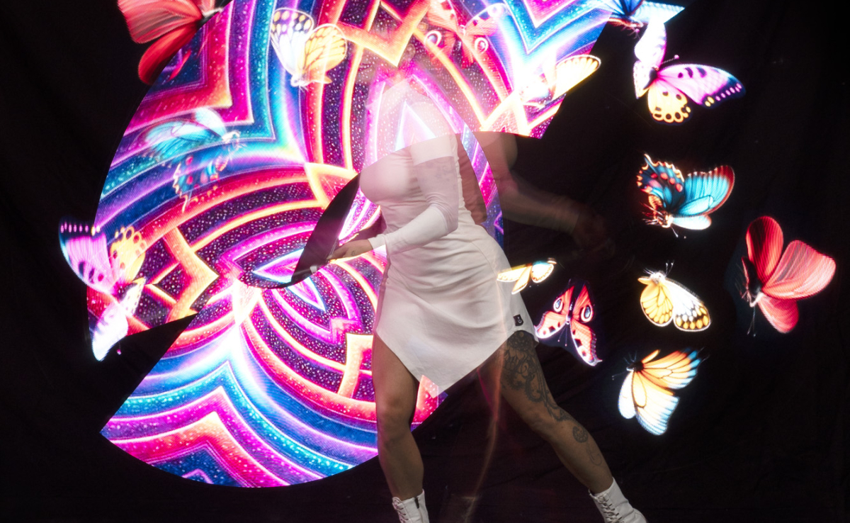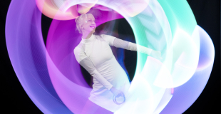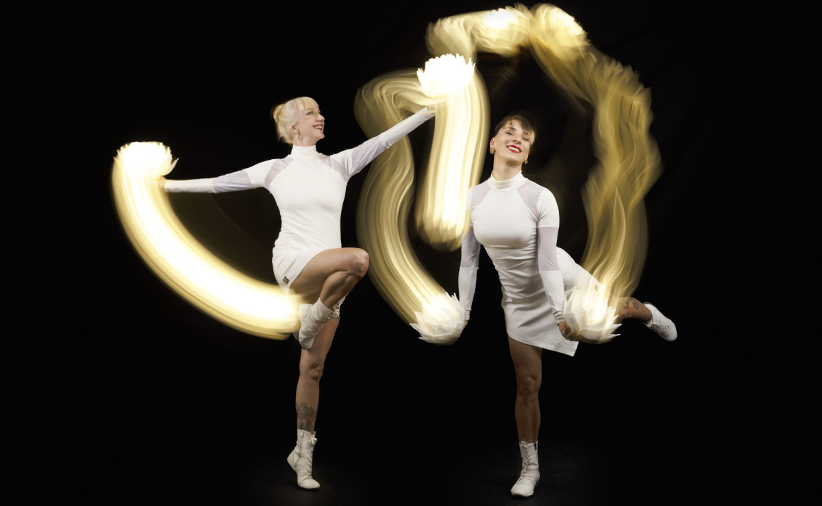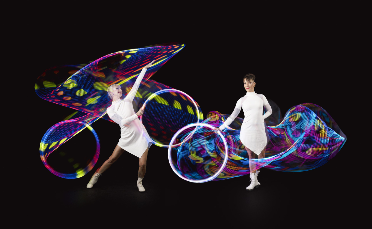 À la croisée de la danse jazz et des flow-arts, le duo compose une écriture lumineuse synchronisée à un univers musical envoûtant. La lumière prolonge le geste, sculpte l’espace et révèle un dialogue subtil entre l’humain, la technologie et le mouvement.