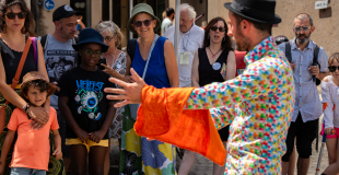 Chaque arrêt est l’occasion d’un échange avec le public, invité à participer ou à observer de très près. L’improvisation tient une place importante, permettant d’adapter la déambulation aux lieux, aux rencontres et aux éléments urbains présents, qui peuvent devenir supports de jeu ou partenaires inattendus. Movimento crée ainsi des moments de surprise et de convivialité, transformant l’espace public en terrain de jeu vivant, accessible et chaleureux pour tous les publics.