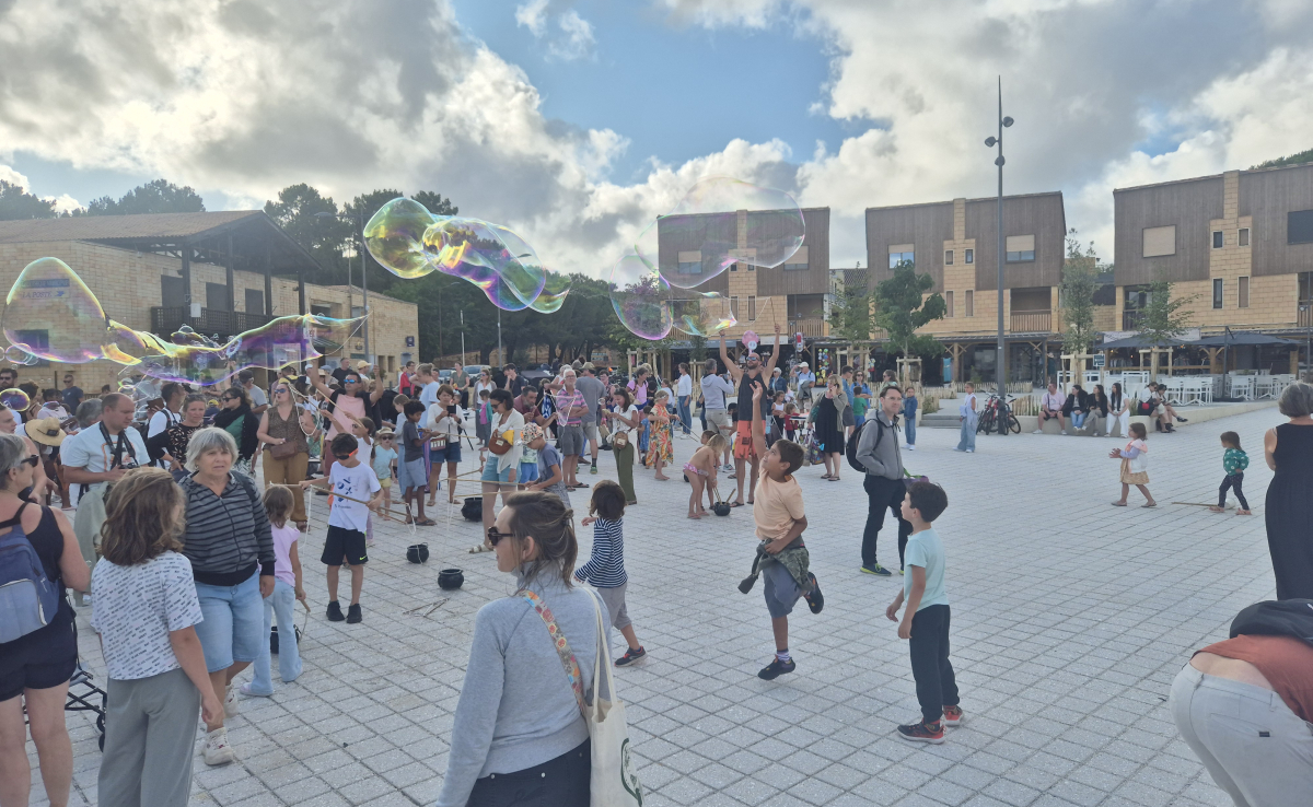 L’Atelier Interactif : Parce que l'été est la saison du partage, "Plop" invite le public à la manipulation. Petits et grands s'essaient à l'art de créer des bulles géantes avec un matériel professionnel, créant une dynamique joyeuse et conviviale.