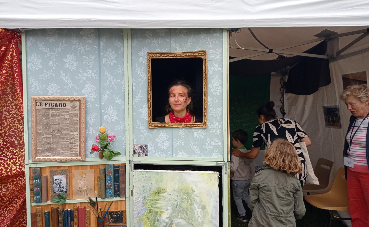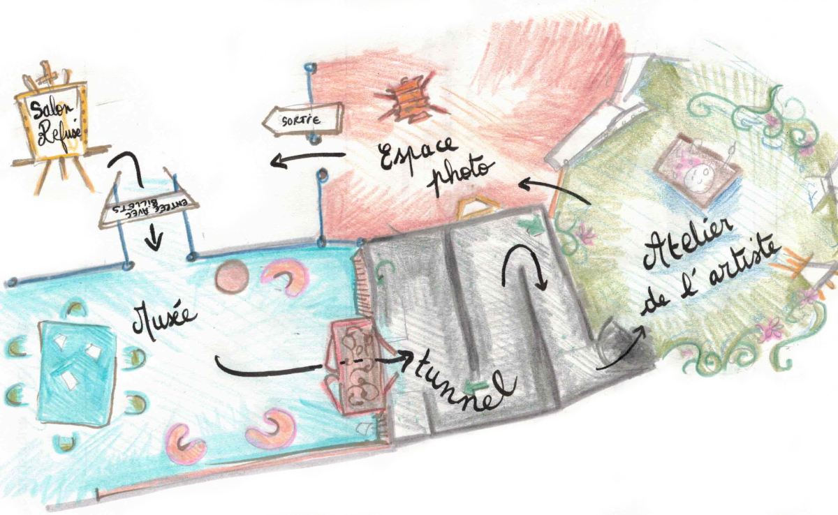 "Le salon refusé" est une installation où les gens peuvent déambuler dans un tout petit musée-atelier d'artiste façon Giverny. Quand la cloche retenti, ils et elles sont invités à passer à travers une armoire magique qui les propulse à travers le temps, pour atterrir dans le jardin de l'artiste en 1900 et y servir de toile.