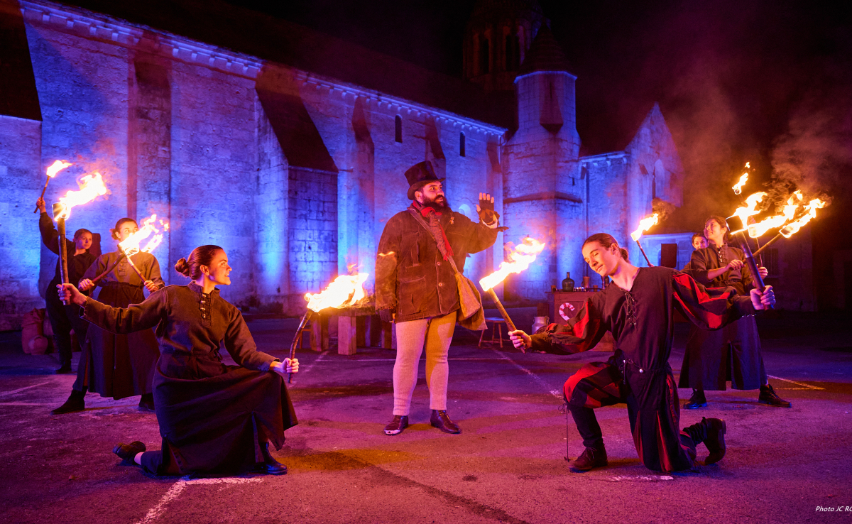Il est également possible de lier ces différentes saynètes pour créer un spectacle de scène qui sera joué en soirée et agrémenté de lumières et d’effets supplémentaires comme du jonglage de feu et de la pyrotechnie.