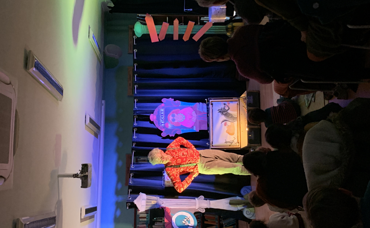 Il y a là des dessins qui défilent à l'aide de manivelle, des lampions avec des histoires dessinées dessus, ou encore des personnages découpés en cartons...