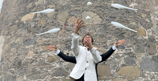 Plongez dans un univers où la danse et le jonglage s’entrelacent dans une harmonie parfaite. Dans cette création, la fluidité des corps et la pureté des balles transparentes offrent une illusion des plus envoûtantes. Le mouvement des sphères de cristal devient rapidement hypnotique, capturant le regard du public et suspendant le temps.