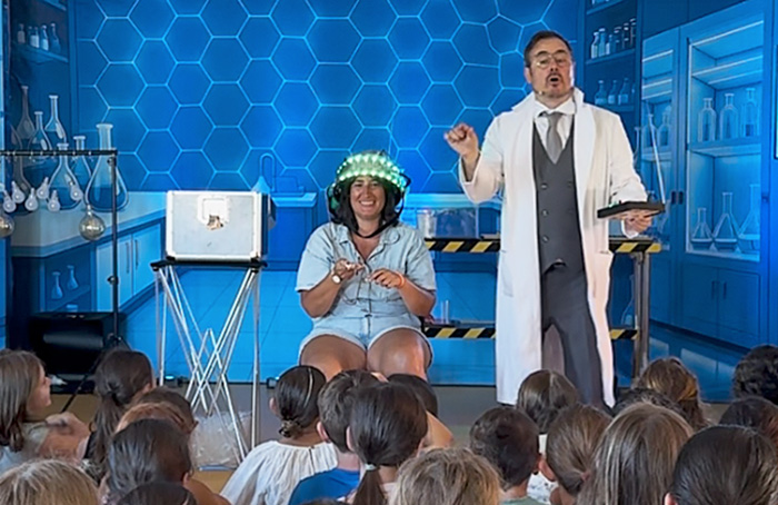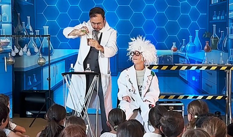 Au programme : électricité sans fil, illusions d’optique, réactions chimiques colorées et inventions farfelues… Chaque démonstration est pensée pour émerveiller tout en éveillant la curiosité scientifique. Les enfants ne sont pas de simples spectateurs : ils deviennent de véritables apprentis scientifiques, invités à monter sur scène et à interagir tout au long du spectacle.