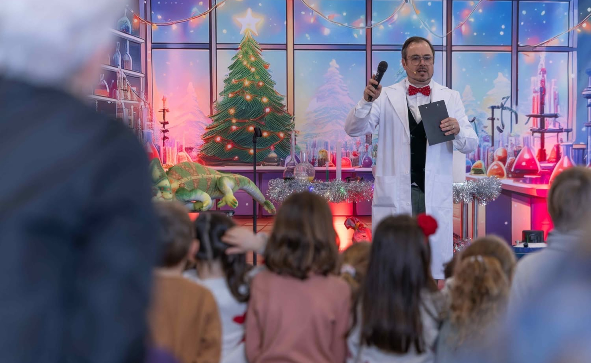 Le Noël du Professeur Alchimus est un spectacle féerique et interactif spécialement conçu pour les fêtes de fin d’année. Dans son laboratoire, le Professeur Alchimus reçoit d’étranges cadeaux envoyés par le Père Noël… mais rien ne se passe comme prévu ! Entre expériences scientifiques surprenantes et magie de Noël, chaque découverte devient une aventure pleine de rires et d’émerveillement.