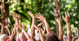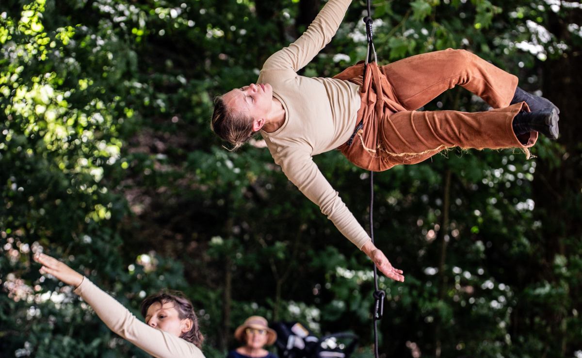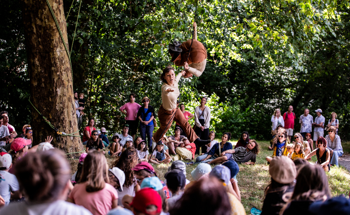 Expérience participative et ludique pour 2 danseuses aériennes, un musicien multi-instrumentiste et un arbre.