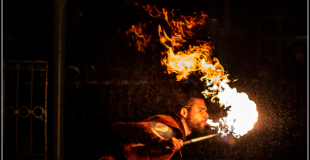 Yule : Spectacle feu et pyrotechnie Lorsque s'allument les lanternes, les tambours retentissent dans la nuit noire... Entrez dans un rituel de magie ancestrale, une lutte de pouvoir entre sorciers et sorcière, un passage vers le monde... Par Faces & Fire Cie