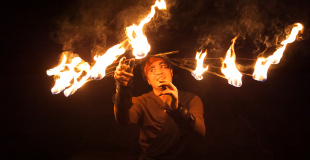 Firesolo - Spectacle de flammes et d'artifices Firesolo, des flammes dans le coeur! est un fireshow de 30 mn environ en solo pour lequel Shintaï vous a concocté ses meilleurs effets de flammes. C'est plus d'une dizaine d'instruments... Par Shintaï Jonglothéâtre