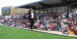 Théâtre de rue, mime : A la renverse, je suis tombée !
