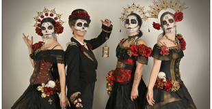 Nos artistes en tenues folkloriques d'inspiration mexicaine dansent sur des rythmes endiablés, déambulent et jonglent dans vos rues aux couleurs de la fête des morts. Éventails, drapeaux, bolas,...
