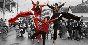 Umberto et Mr Guigaro déambulent du haut de leurs échasses au milieu des spectateurs surpris et impressionnés. Au sol, Sacha, loyal et naïf serviteur, ouvre le chemin du spectacle. Tous trois...