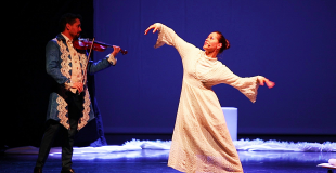 Duo romantique au tissu aérien Un homme et une femme s’envolent à plusieurs mètres de hauteur et enchaînent des acrobaties périlleuses. Le jeu des drapés amène magie et sensualité, créant...