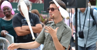 Déambulation avec bulles de savon géantes et/ou jonglerie suivant la demande.Artistes : de 1 à 4 artistesDe grosses et belles bulles et de la jonglerie, voilà ce qui animera vos fêtes, festivals...